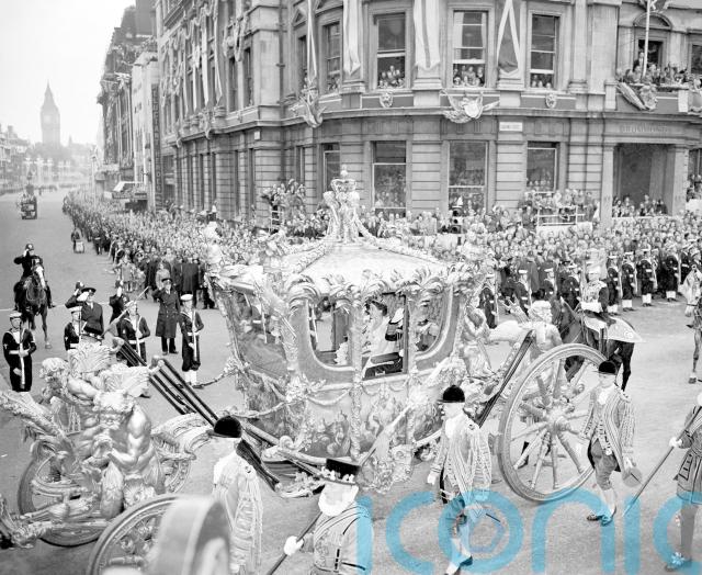 The Gold State Coach will play a starring role in the Jubilee Pageant on Sunday, travelling down The Mall, with footage of the Queen using it on her Coronation showing at its windows, giving the impression of the young monarch riding in the carriage.