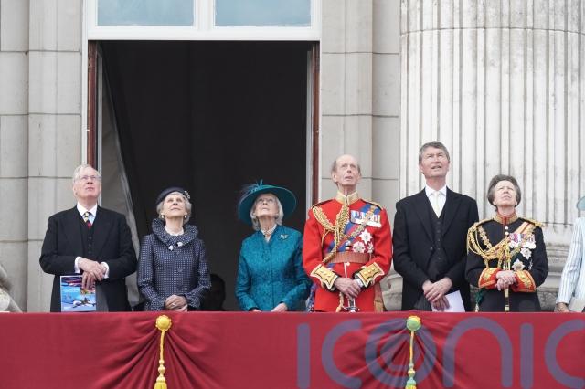 The Queen limited those taking to the famous frontage of Buckingham Palace for the flypast to working members of her family after “careful consideration”, the Palace said.