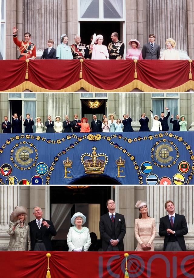 Ten years earlier during the 2002 Golden Jubilee, 20 members of the royal family had packed the balcony of the Queen’s London home to watch a traditional flypast.