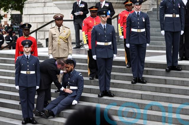 The two military personnel – one from the Royal Air Force Regiment and the other from the Royal Marines – appeared to lose consciousness while lining the steps up to the Great West Door of St Paul’s Cathedral on Friday morning.