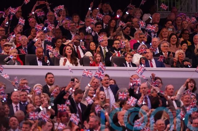 The Cambridges enjoyed the party atmosphere as The Firm sang along with the tunes at the Jubilee concert.