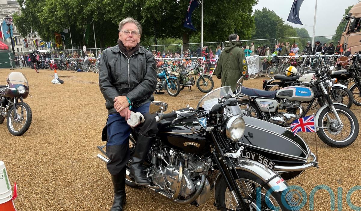 Peter Biles, from High Barnet, and his 1952 Vincent twin-cylinder were part of a fleet of classic motorbikes celebrating the culture, music and fashion of the first decade of the Queen’s reign in the pageant’s The Time Of Our Lives act.