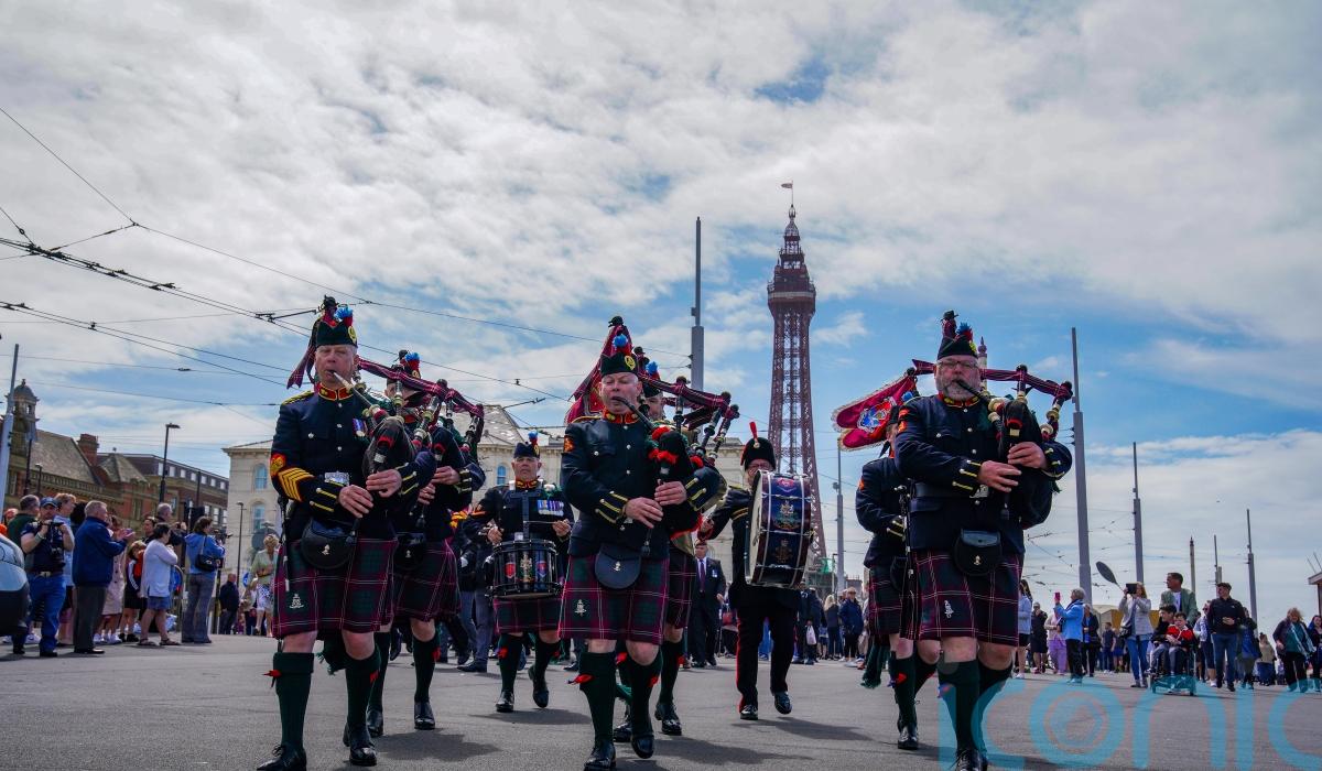 Members of the Tumbledown Veterans & Families Association, many of whom served in the 2nd Battalion Scots Guards, gather annually in the Lancashire resort.