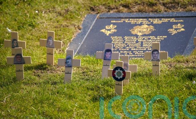 Pictured crosses featuring the nine men were laid, some by relatives, at a memorial plaque close to the cenotaph.
