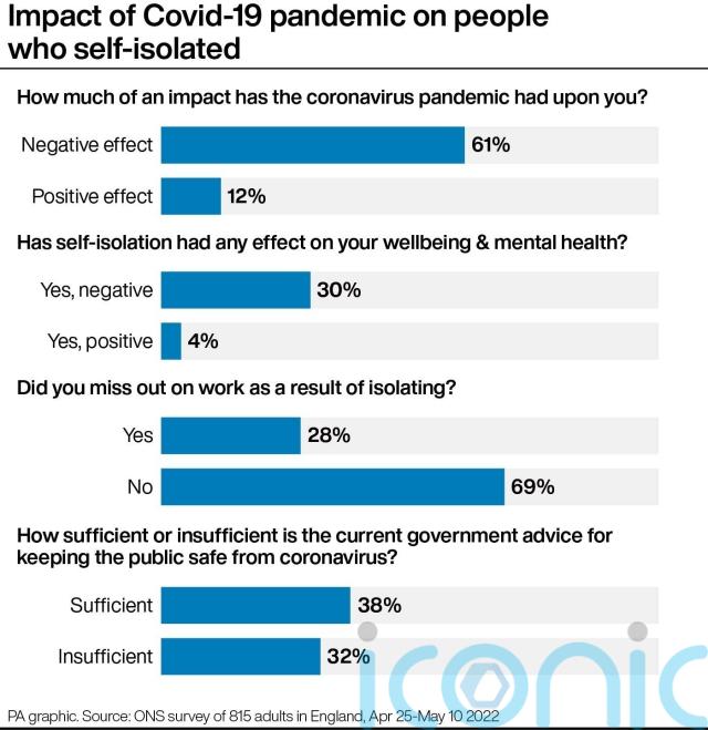 In addition, 2% of respondents said they had lost their job because they were isolating, but the ONS said this figure should be treated with caution due to the very small sample size.
