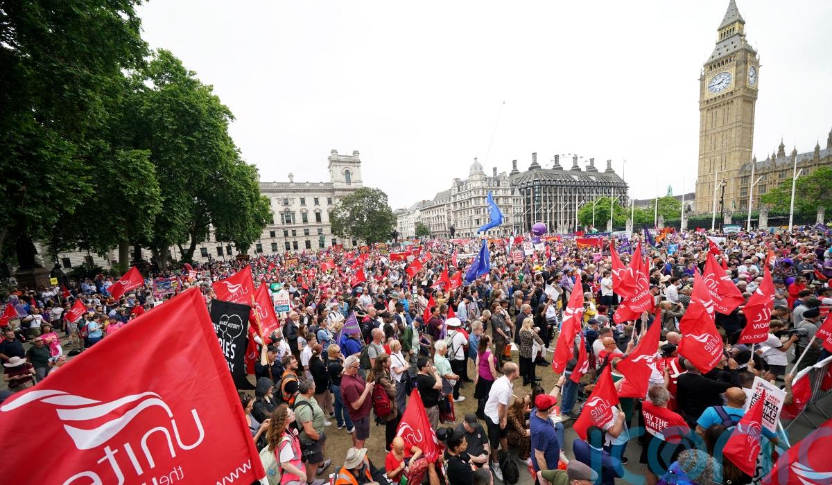 Thousands of protesters gathered in central London to demand action from the Government to combat the cost-of-living crisis.