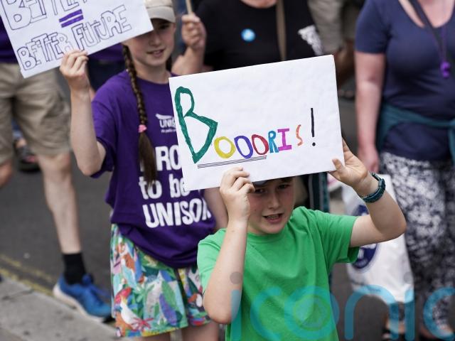 The crowds began a march from Portland Place to Parliament Square at 12pm for a rally, with speakers including Frances O’Grady, general secretary of the TUC, which is organising the event.