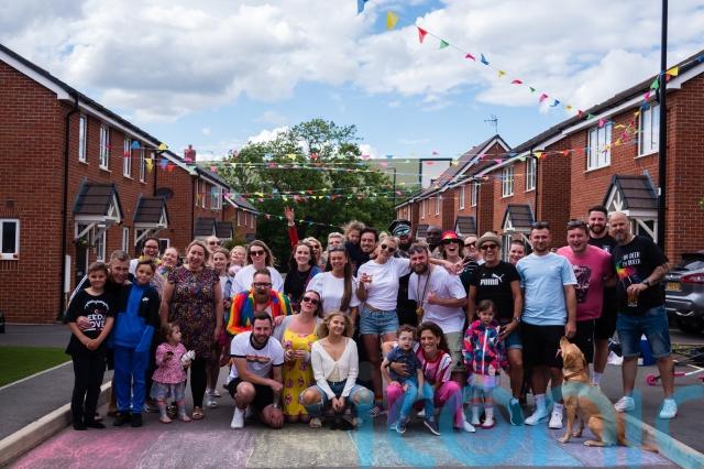 Children living on the street helped create a rainbow crossing in chalk as each home was decked in celebratory rainbow bunting.