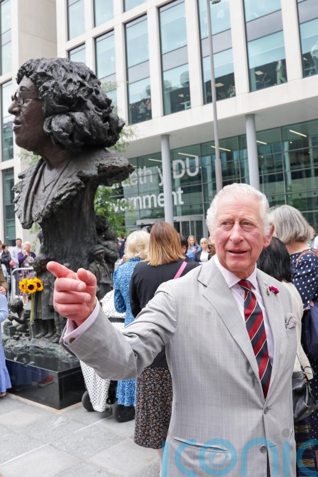 Charles and Camilla later walked a few metres to view the statue of Betty Campbell, the first black woman to become a headteacher in Wales and a champion of diversity and equality.