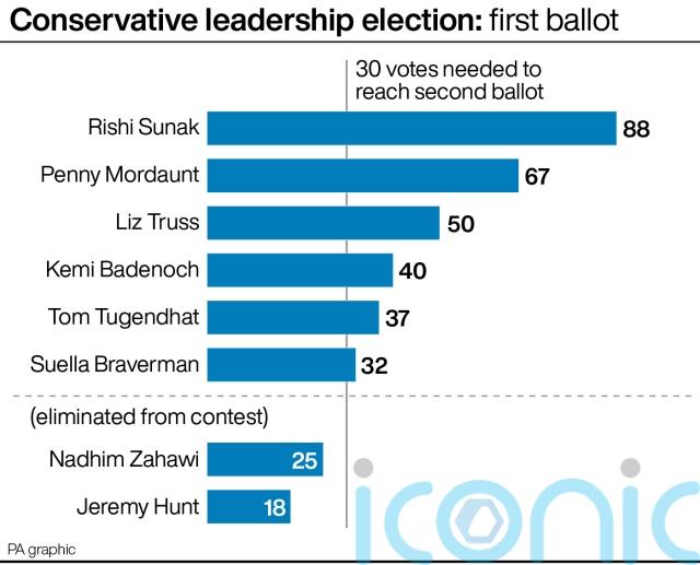 Former chancellor Rishi Sunak claimed the top spot but the battle to reach the final stage of the contest – which will see the two candidates chosen by MPs face a vote of the membership – is far from over.