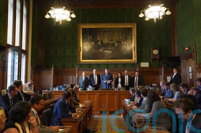 Former Conservative leader Sir Iain Duncan Smith, Culture Secretary Nadine Dorries and Work and Pensions Secretary Therese Coffey were among the high-profile names in the audience, while Business and Energy Secretary Kwasi Kwarteng introduced Ms Truss to the stage.