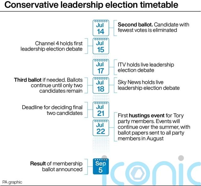 Tory MPs will continue to vote in subsequent rounds until there are just two candidates, who will then battle it out over the summer to win the support of Conservative members, with their choice of the next prime minister being unveiled on September 5.