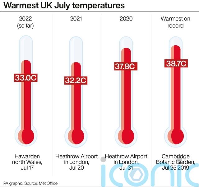 Earlier today, Gogerddan, near Aberystwyth on the coast of mid-west Wales, also broke the record after it hit 35.3C.