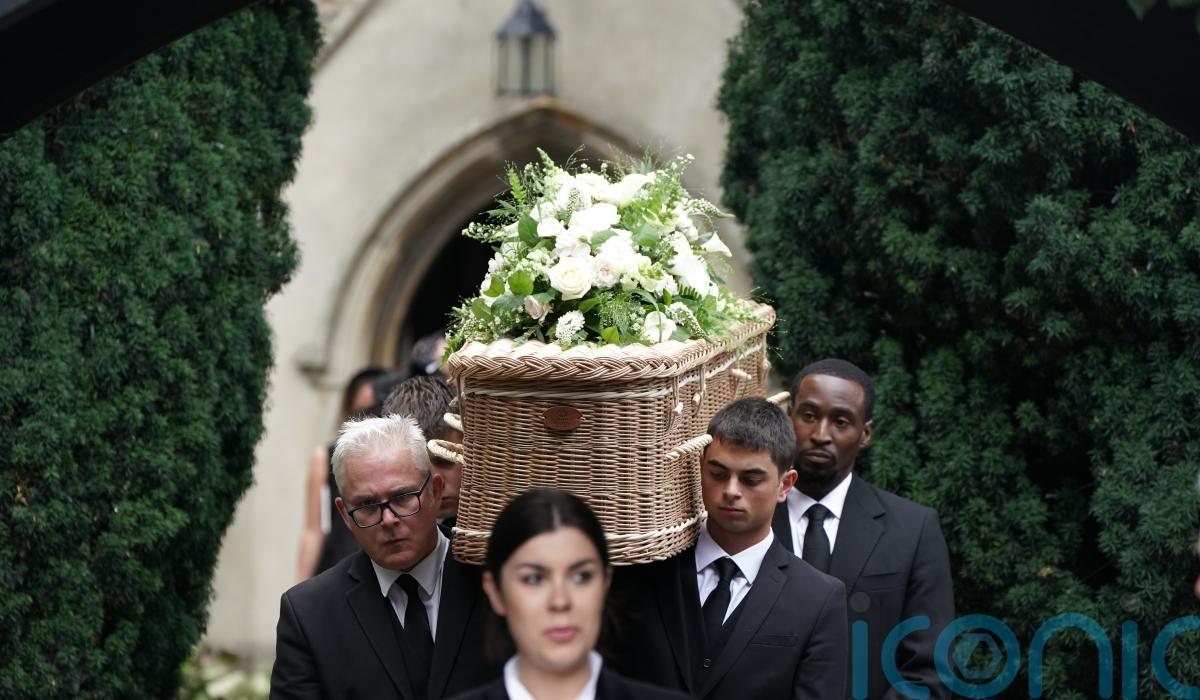 Her husband and son were among those who carried the wicker coffin, adorned with the rose that bears her name, into St Mary’s Church in Barnes on Wednesday afternoon.