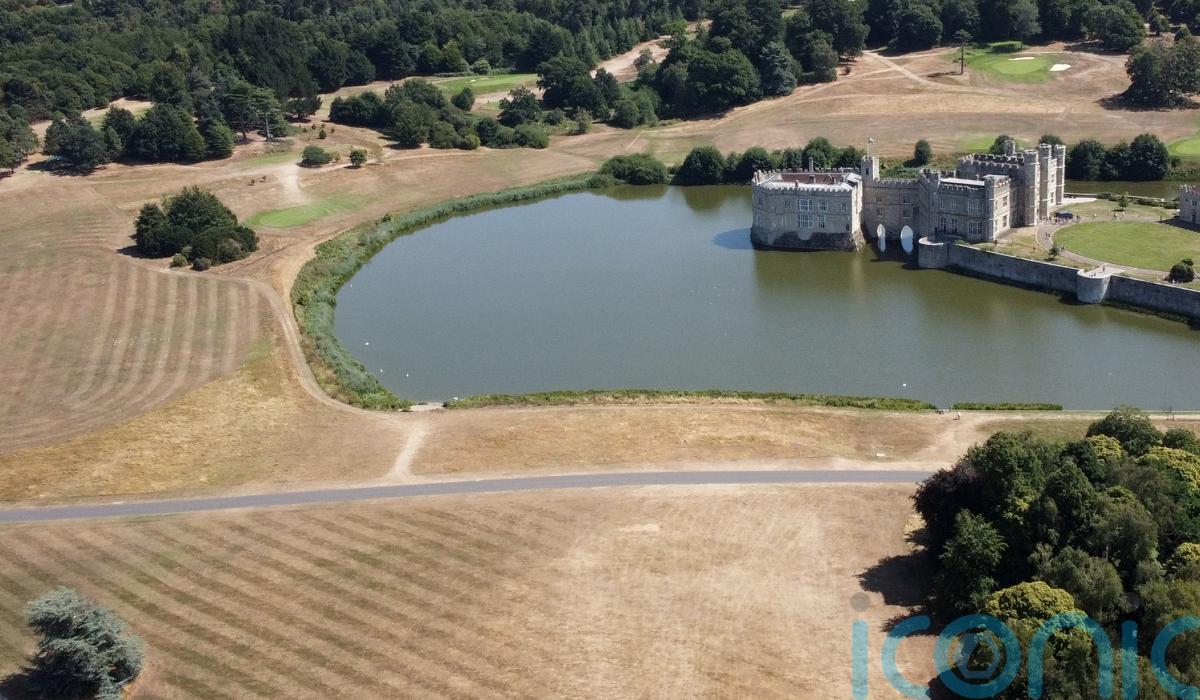 With hosepipe bans on their way and calls to ration water, landmarks such as Leeds Castle in Kent look very different than the images in tourist brochures while the going was decidedly firm for racehorses being put through their paces at Newmarket.