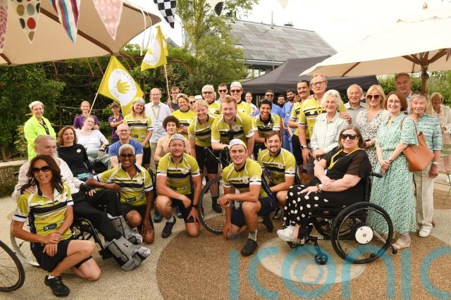 Five cyclists have completed a 1,100-mile trip across the UK, raising more than £80,000 for a charity working to install “life-changing” gardens at every spinal injury centre in the country.