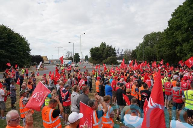 It involves a walk out of about 1,900 members of Unite at Felixstowe, which handles around four million containers a year from 2,000 ships, in a dispute over pay.