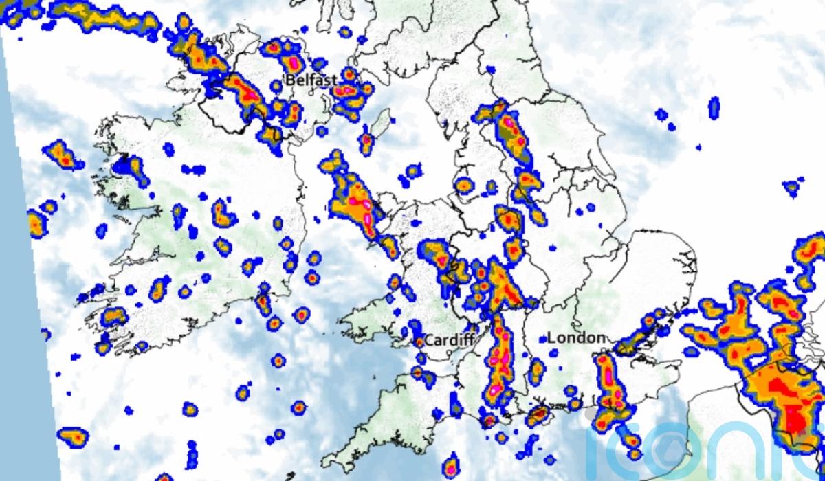 Heavy rain and thunderstorms are set to return on Monday after more than 36,000 lightning strikes were recorded across the UK in just 12 hours.