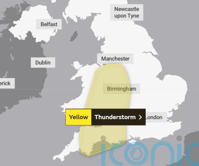 Another yellow weather warning for thunderstorms is now in place across half of Wales, parts of the South West England, southern England, the West Midlands and north-west England between 2pm on Monday and 2am on Tuesday.