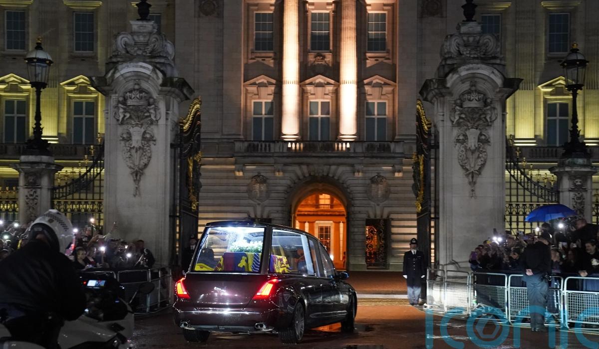 The Queen’s coffin has arrived at Buckingham Palace in London after being flown from Edinburgh.