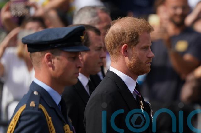 The King and his sons William and Harry walked solemnly behind the Queen’s coffin as she left Buckingham Palace for the final time ahead of her lying in state.