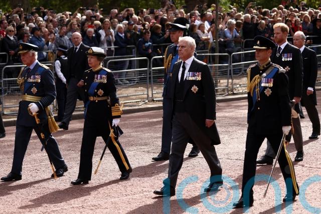 The King walked in line with the Princess Royal, the Duke of York and the Earl of Wessex.