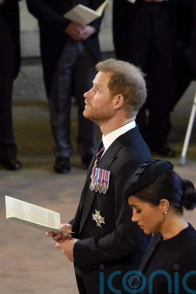The Duchess of Sussex appeared to take a deep breath as the Queen’s coffin passed in front of her.