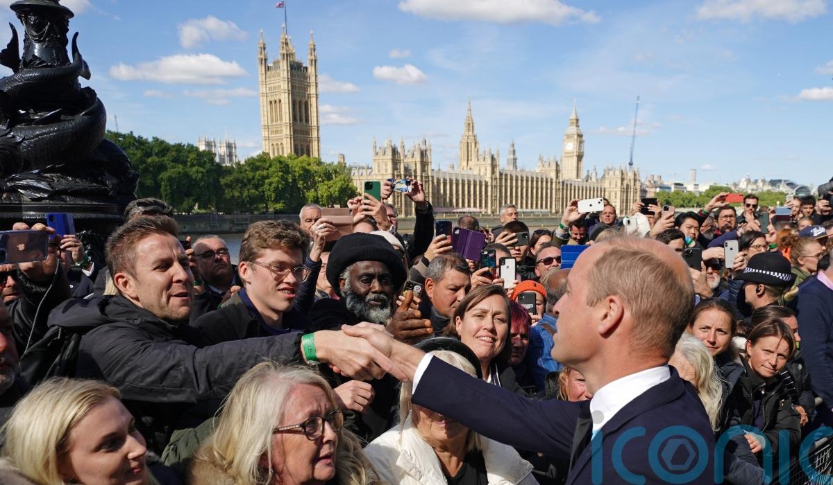 Hundreds of people who had been waiting for more than 10 hours to see the Queen lying in state were warmly greeted by Charles and William beneath sunny skies on Lambeth Palace Road.