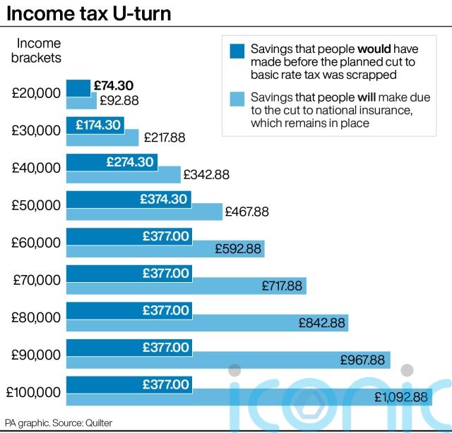 Here are savings for different income brackets before the cut to basic rate tax was scrapped, followed by the savings they will make due to the cut to national insurance, which remains in place, according to Quilter: