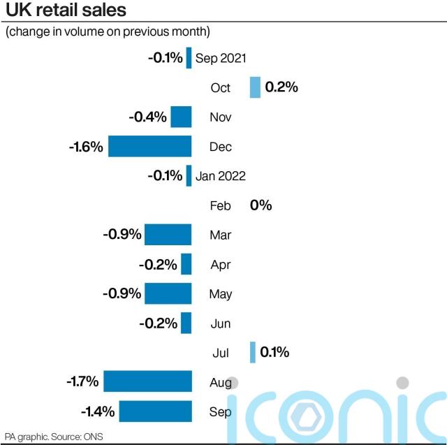 The ONS said food stores saw sales particularly drop, sliding by 1.8% in September, continuing a downward trend since summer last year when pandemic restrictions were eased on hospitality.