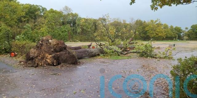 The heavy winds also caused damage to signage and lamp posts in the car park of Marwell Zoo near Winchester, Hampshire, at just after 4pm on Sunday October 23.