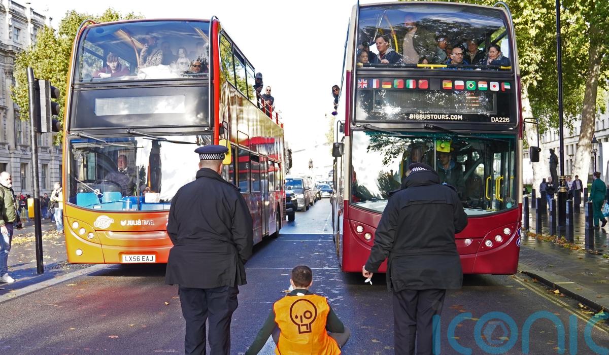 The Metropolitan Police tweeted that they were aware of protesters blocking the road by Trafalgar Square and that officers were “rapidly on the scene” and were “dealing” with the situation.