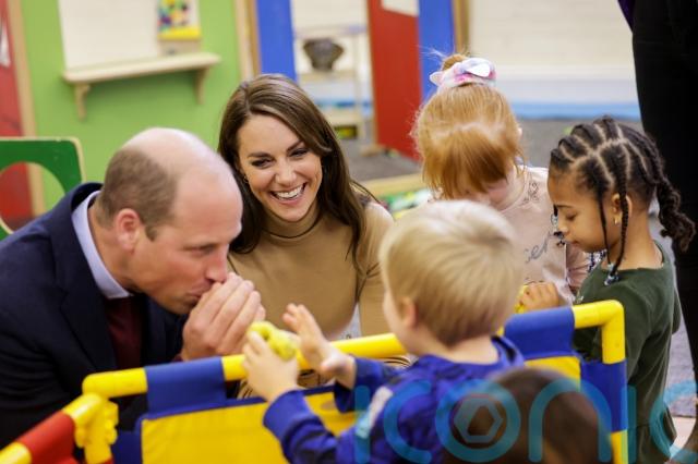 As the couple toured the centre, they stopped to talk to nursery children who showed them their playdough creations.