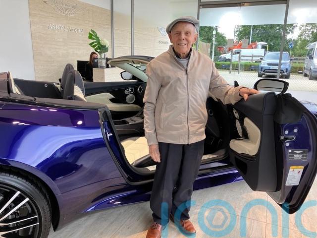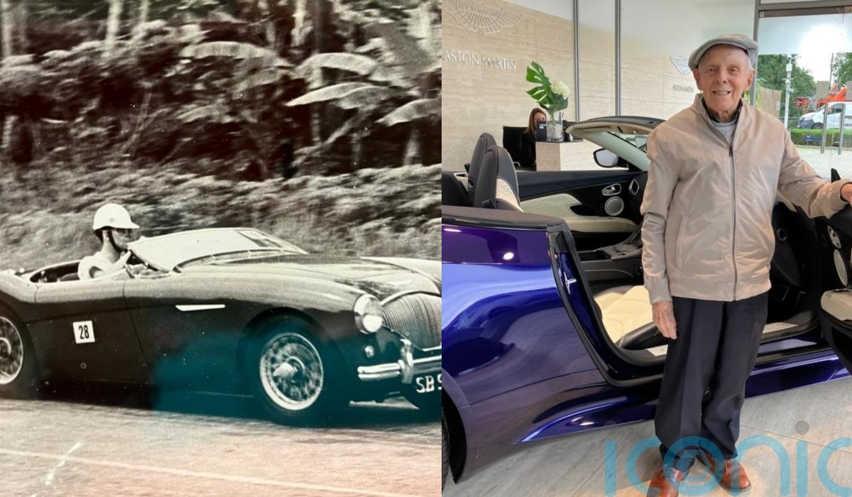 A 92-year-old care home resident relived “happy memories” of his time as a racing driver after he was surprised with a trip around his local town in the latest Aston Martin.