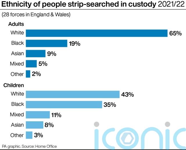 The “most notable differences” between adult and child strip-searches were that “higher proportions” of children were black or from a black British background (35%), compared with adults (19%), the Home Office report said.