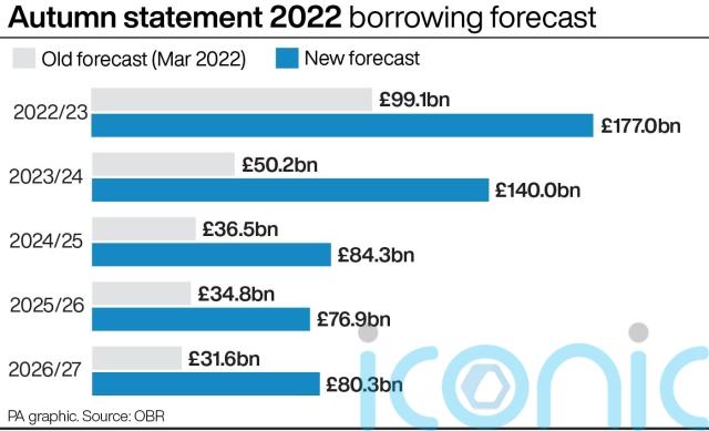 The Office for Budget Responsibility (OBR) forecast the UK’s inflation rate to be 9.1% this year and 7.4% next year, contributing to the squeeze on living standards.