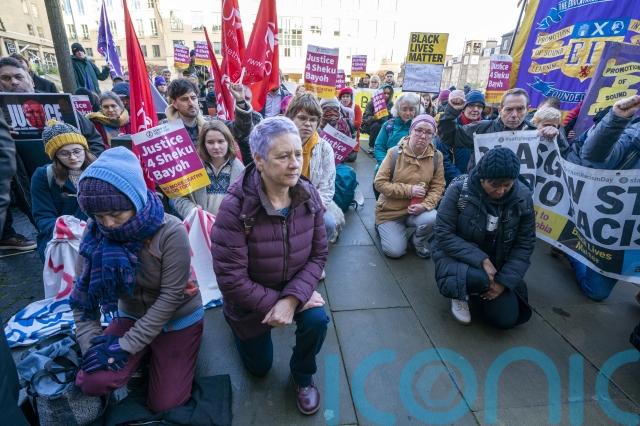 About 100 campaigners from trade unions across Scotland stood outside the building on Wednesday morning showing their solidarity with the Bayoh family, joined by the family’s lawyer, Aamer Anwar.