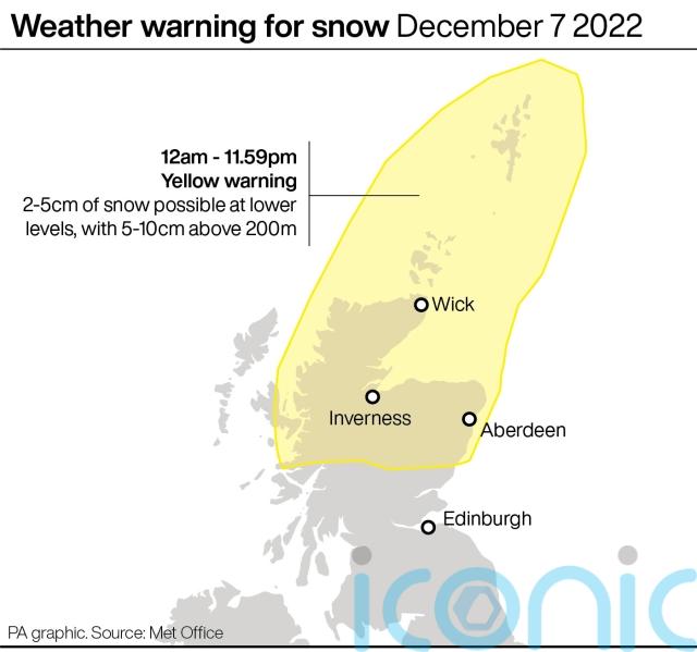 Met Office forecaster Dan Stroud told the PA news agency: “We’ve got a spell of showers feeding into North Sea coastal areas during Tuesday. They will turn increasingly wintry across parts of northern Scotland, with accumulations on higher ground.