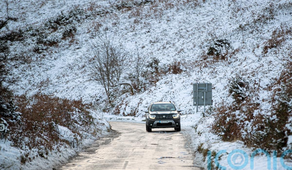 Authorities warned of wintry conditions on the roads and urged people to drive with care.