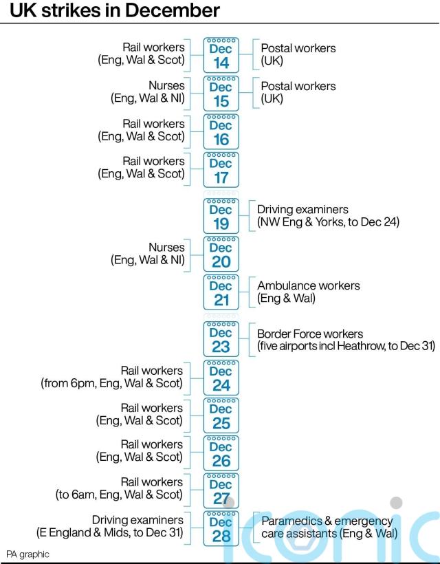 The Prime Minister insisted they are standing by the offers recommended by the independent pay review body and claimed the strikes were “Labour’s nightmare before Christmas” because of the party’s links with the unions.