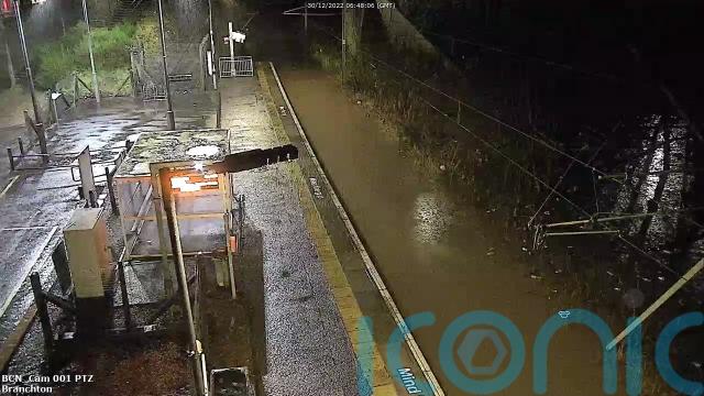 The rail operator shared an image of Branchton station earlier on Friday showing water spilling over the platform.