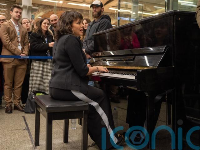 Norah Jones delighted passers-by as she performed a medley of songs on St Pancras International station’s Elton John piano.