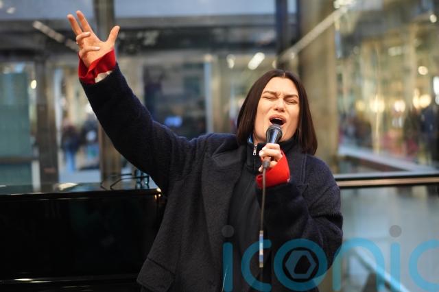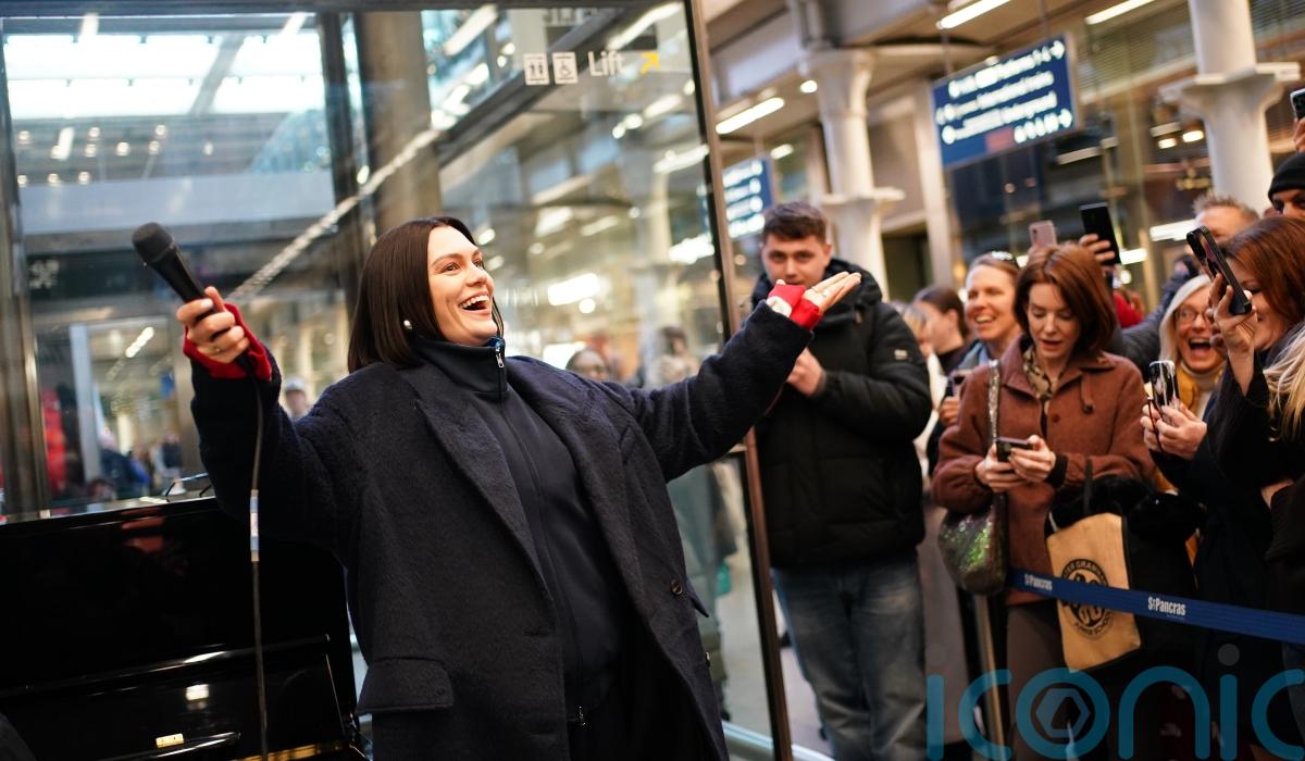 Singer Jessie J surprised passers-by as she performed at St Pancras International station on Tuesday.