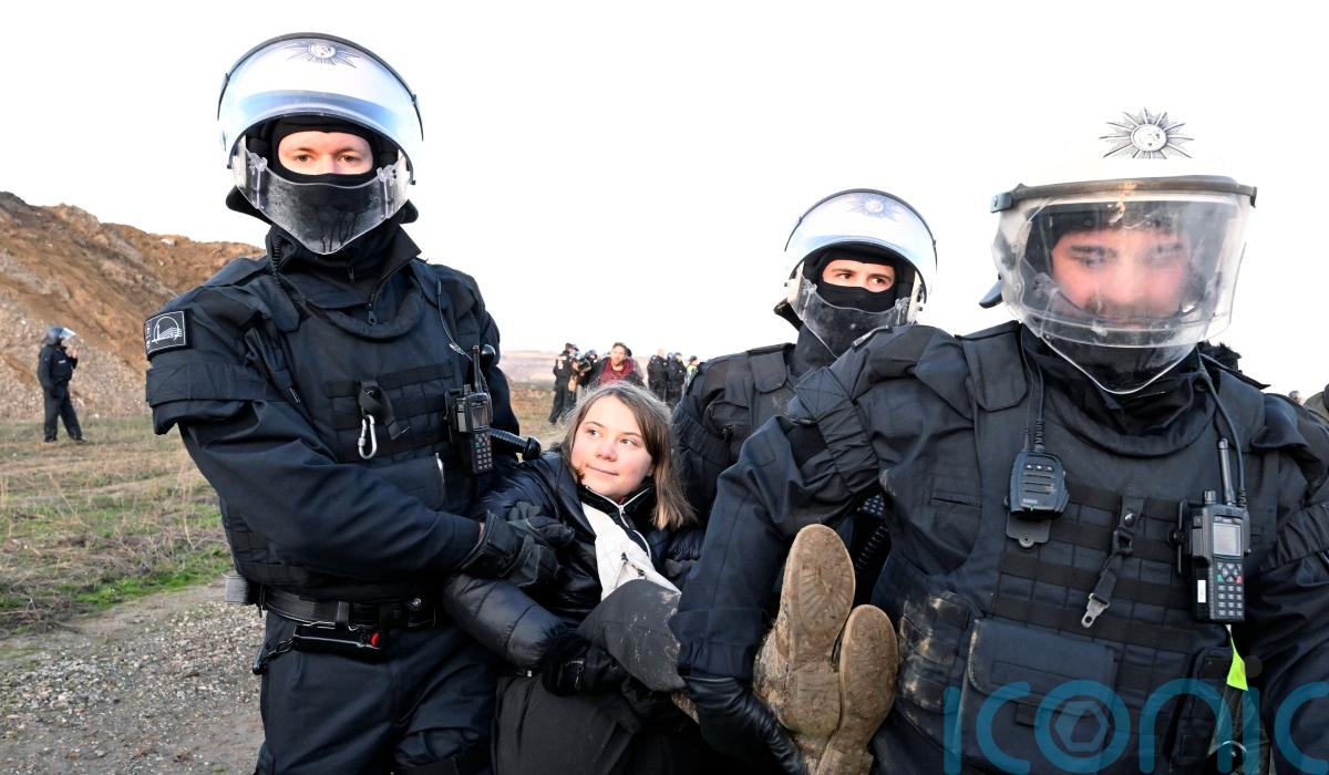 Ms Thunberg was among hundreds of people who resumed anti-mining protests at multiple locations in the western German state of North Rhine-Westphalia a day after the last two climate activists holed up in a tunnel beneath the village of Luetzerath left the site.