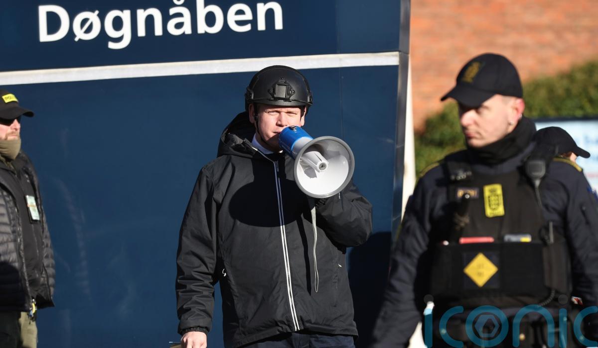 On Friday, Mr Paludan first burned a copy of the Muslim holy book outside a mosque in Copenhagen. Loud music blared from the mosque as he spoke, in an apparent attempt to drown his words.