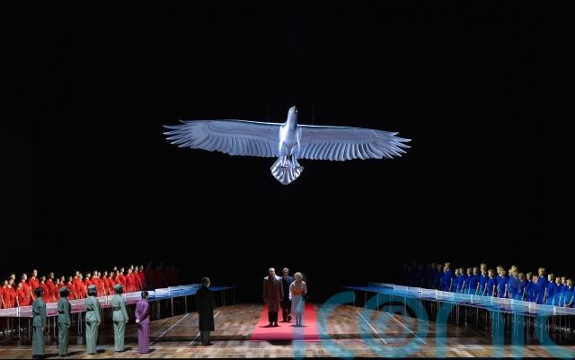 Thomas Hampson, 67, an American baritone, starred as president Richard Nixon, complete with hunched shoulders and a sweaty face he repeatedly dabbed with a white handkerchief.