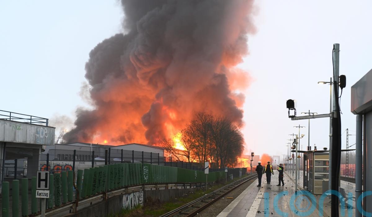 Police have warned people in Hamburg, Germany, to close their windows after a large fire that engulfed several warehouses sent black, chemical-laden smoke drifting over the city.