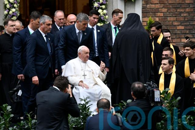 Pope Francis has met people from both sides of Russia’s war with Ukraine – greeting some of the 2.5 million Ukrainian refugees who have fled across the border to Hungary during a public prayer service, before a private meeting with an envoy of the pro-Kremlin Russian Orthodox Church.