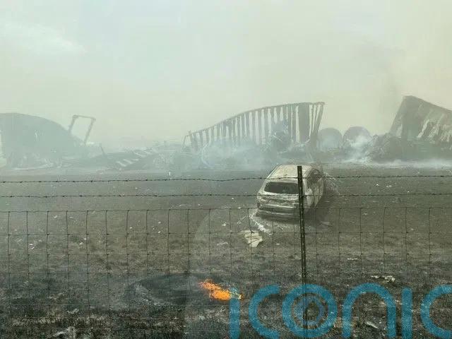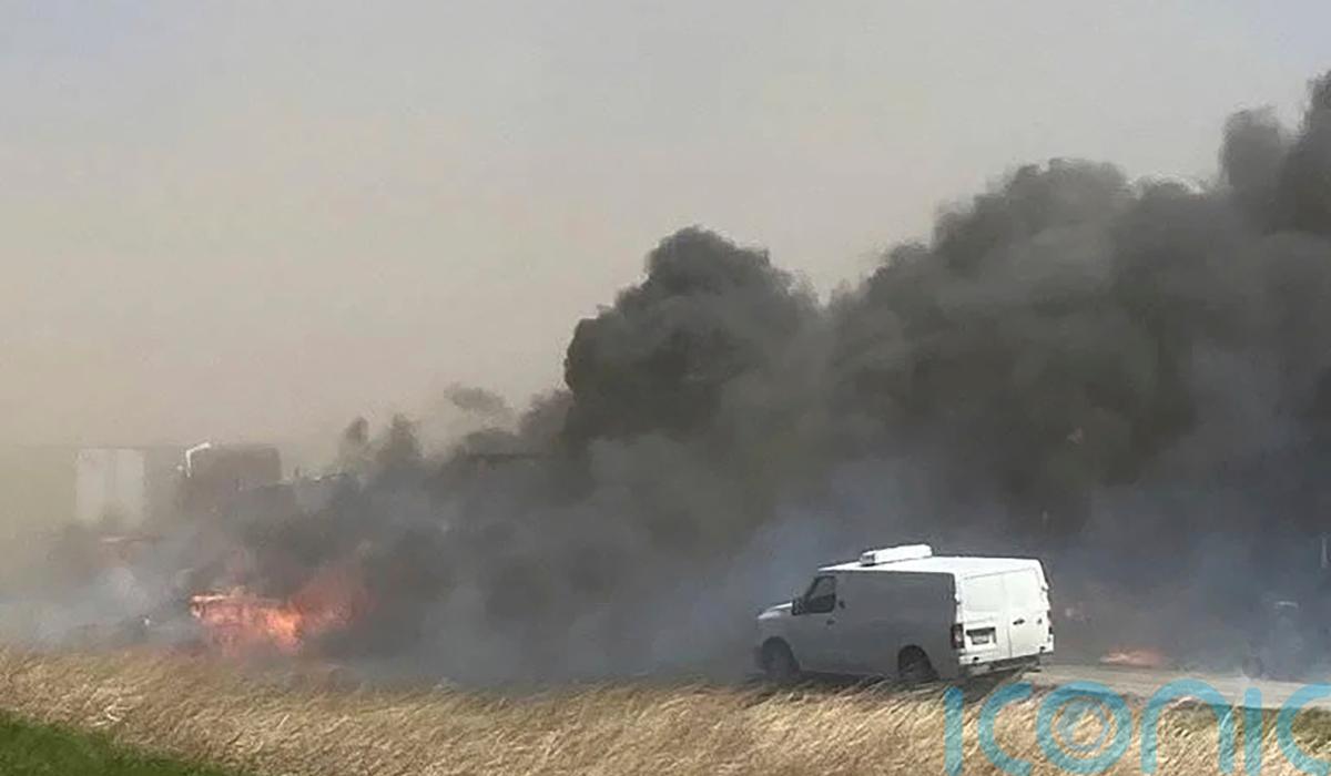 The late morning crashes involved 40 to 60 cars and multiple lorries – two of which caught fire, Illinois State Police Major Ryan Starrick said.