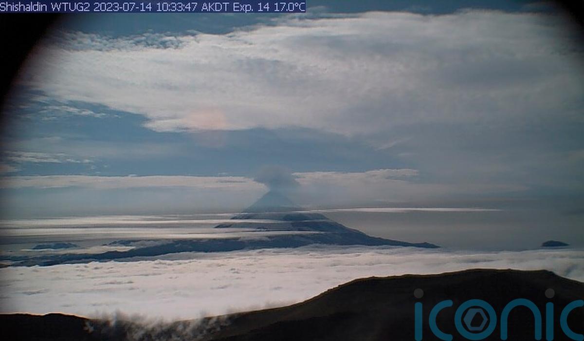 An erupting volcano in Alaska’s Aleutian Islands sent a towering cloud of ash into the air – prompting the National Weather Service to issue an inflight warning to pilots.
